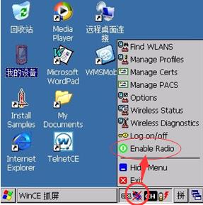 1、系統(tǒng)初次啟動(dòng)后,先“Enable Radio”,如下圖所示,點(diǎn)擊那個(gè)叉叉圖標(biāo),在彈出的菜單里選“Enable Radio”: