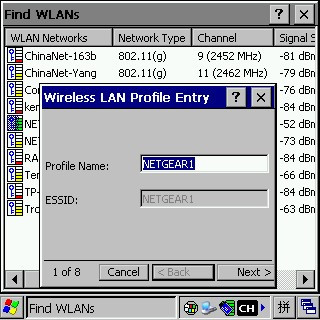 4、接下來(lái)點(diǎn)擊無(wú)線設(shè)置彈出菜單中的“Find WLANS”菜單項(xiàng),待搜索完后,選擇可以訪問(wèn)的無(wú)線路由,在彈出菜單里選擇“Create profile”,如下圖所示: